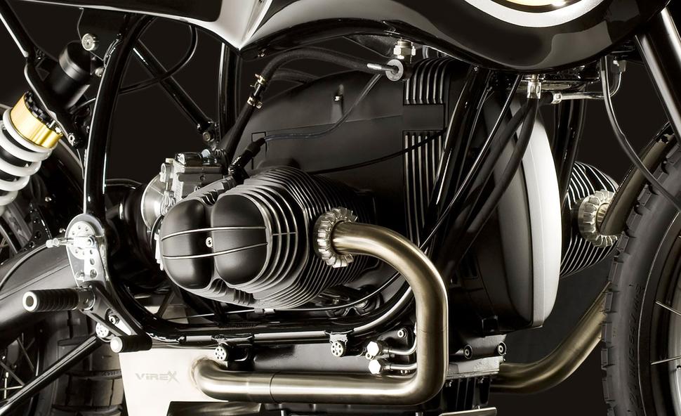 Разумеется, центром композиции стал легендарный 1000-кубовый воздушный оппозит. Он сохранил оригинальный ГРМ, трансмиссию, сцепление и привод, а значит - и аутентичный характер. Однако, топливную систему освежили 40-миллиметровыми карбюраторами Mikuni с компактными впускными воронками, что улучшило отклик на газ и общую производительность двигателя. Затем Stile Italiano создали полную выхлопную систему с патрубками, переходящими в глушитель от VireX.