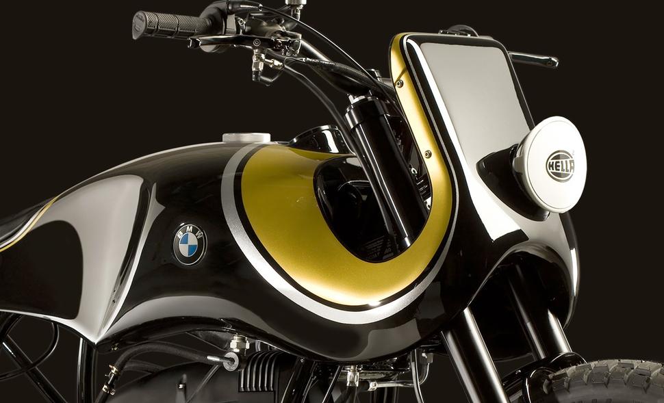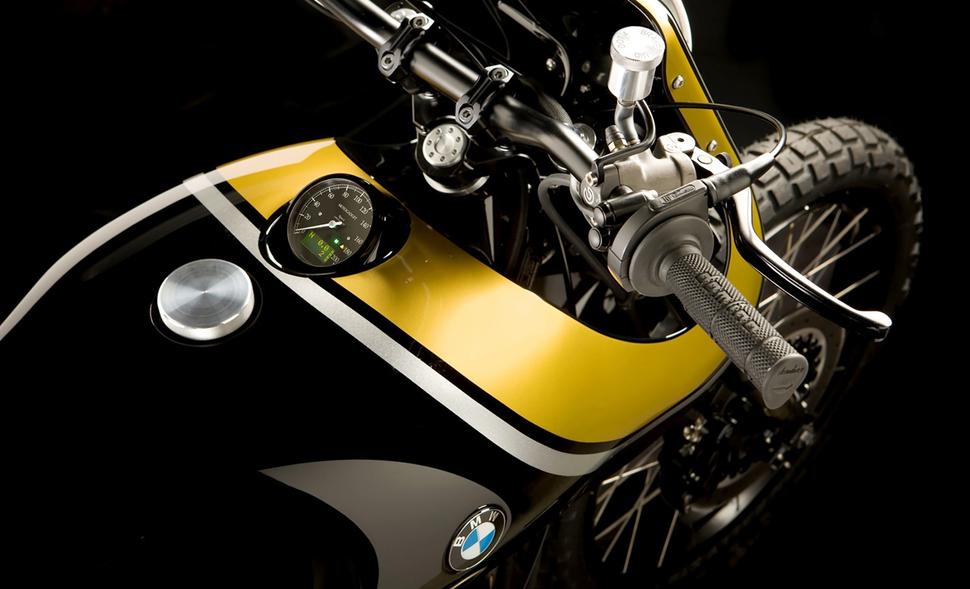 Внимание к деталям Stile Italiano сквозит в каждом уголке мотоцикла, но главное, что бросается в глаза - это, конечно, самодельный монококовый обвес. Созданный специально для этого проекта легкосплавный кузов имитирует массивность оригинального бензобака BMW, но выступает в том числе фиксированным обтекателем и стильным соло-сиденьем.