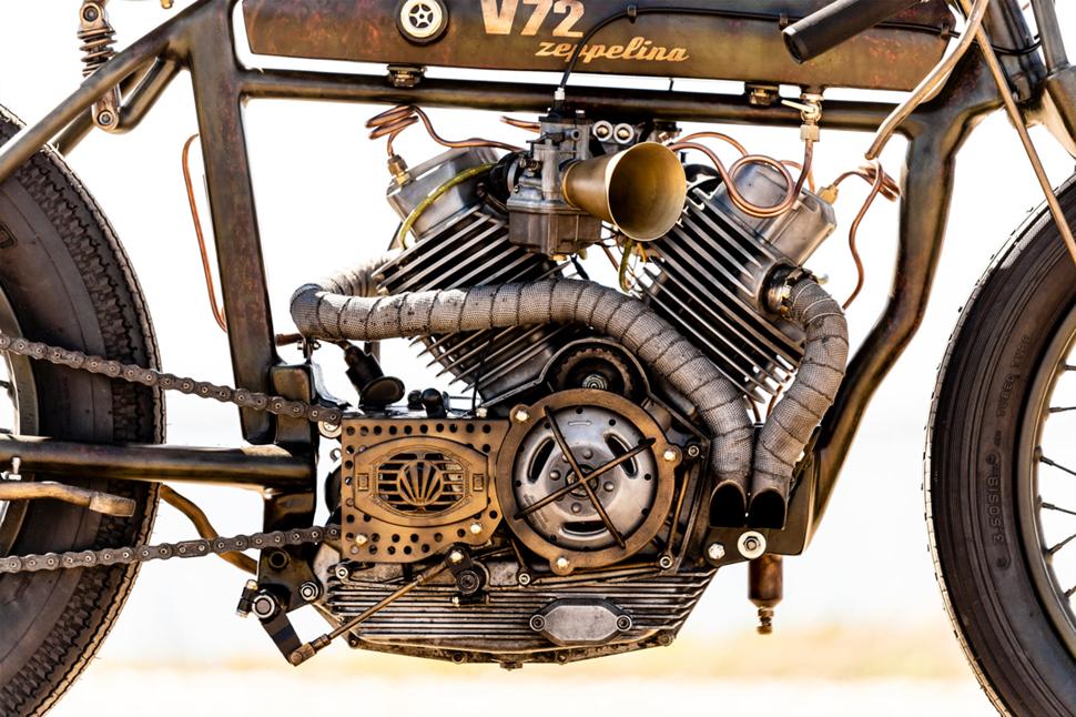Когда-то они господствовали на треке, но найти хотя бы реплику в местах тусовок местных любителей мотоциклов всегда было практически невозможно. Однако в последнее время благодаря телевизионным передачам и мастерам кастомайзинга боард трекеры вернулись. Вернулись, чтобы отомстить. Но что делать, если в твоей стране отыскать Indian 20-х годов это все равно, что найти сказочный горшочек с золотом в конце радуги? Остается только последовать примеру мастеров из испанского кастом ателье Kacerwagen Cycles и собрать собственный боард трекер из подручных материалов. У них получился чумовой вариант, который они назвали The Zeppelina V72.