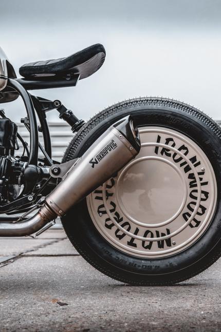 Заднее колесо с нашим названием выглядит фантастически, а глушитель от BMW R nineT обеспечивает мотоциклу брутальный голос.