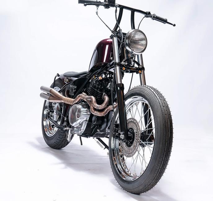 Вот этот дерзкий боббер на базе Suzuki GN250 совершенно точно не выглядит как типичное произведение STG, но это не помешало парням делать его с удовольствием. У клиента, который его заказал, было всего несколько пожеланий, что оставило мастерам много места для творчества. За вдохновением они обратились на Восток - на японскую кастом-сцену, черпая вдохновение в тамошних чопперах и бобберах.