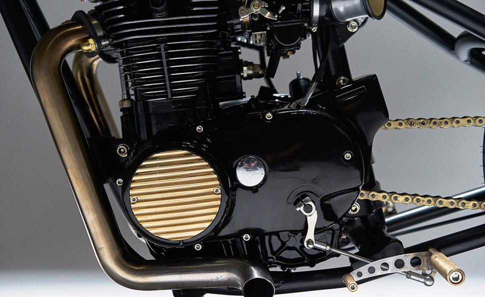 Помимо очевидных бронзовых элементов мотоцикл имеет массу менее броских деталей, составляющих общий образ. Сверлёные тормозные диски перекликаются с рёбрами жёсткости на основе сиденья и ножными рычагами, а задние поворотники крайне изящно встроены в элемент рамы.