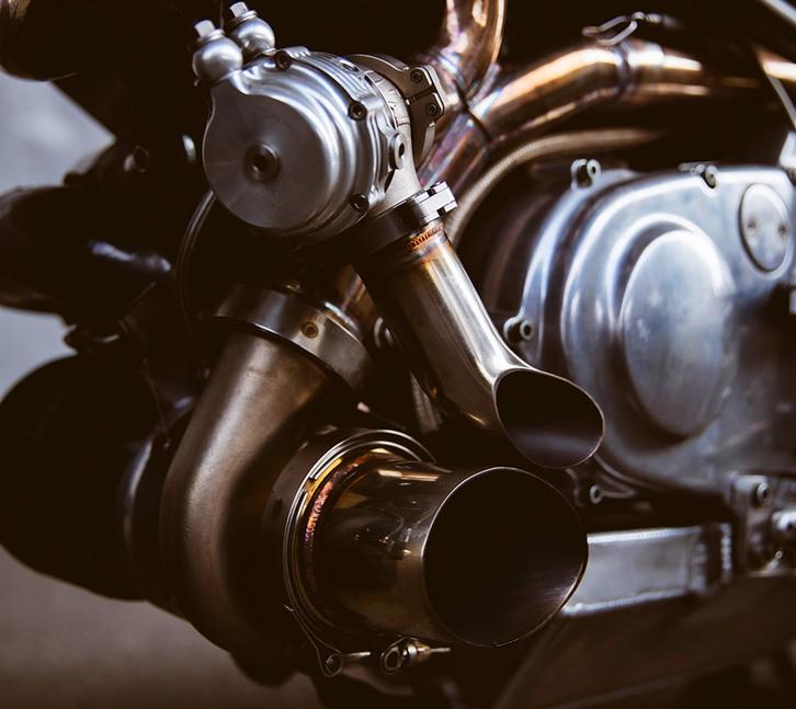 Макс с присущей ему скромностью описывает работу над двигателем как "ничего особенного". Сюда вошла ЦПГ на 1350 кубиков, длинноходные распредвалы, увеличенные клапана, гоночное сцепление и пониженная до 8,5:1 степень сжатия. Двигатель питается через карбюратор Mikuni HSR42 с принудительной подачей топлива и турбиной Garrett GT25R на шарикоподшипниках.