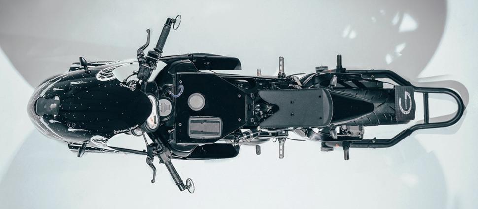 Новая безумная конструкция отторгла фальшбак, являющийся по сути крышкой аирбокса, поскольку топливо находится в раме. Так что Джакомо сделал намного более низкую и лаконичную крышку из стального листа, чтобы закрыть эту область. Аирбокс же он вообще убрал, и двигатель дышит через впускную воронку, берущую воздух сверху и радующую райдера шумом впуска мощного V-твина.
