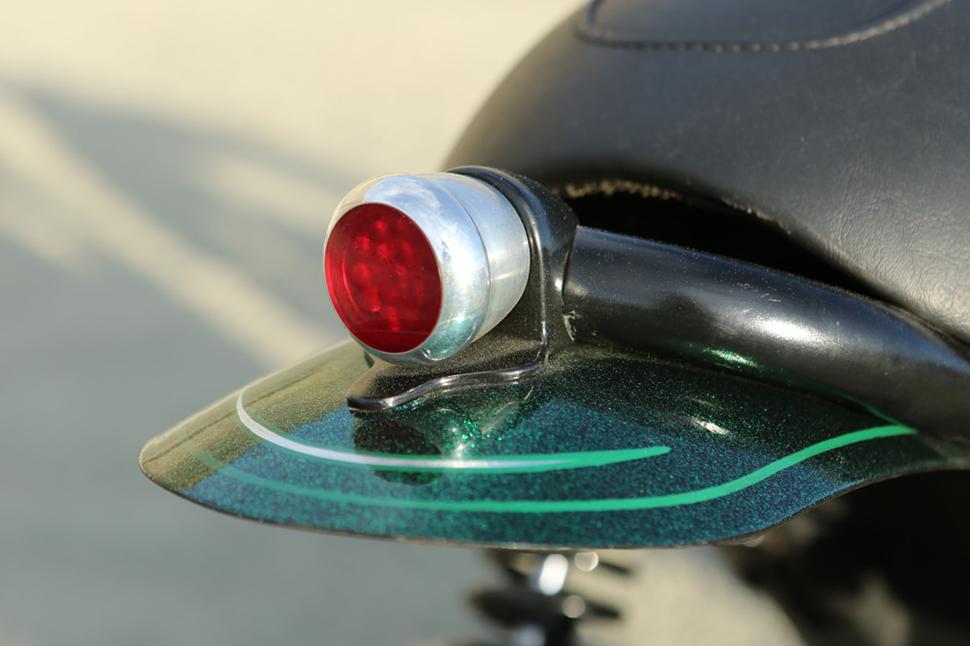 Конечная настройка и работы с проводкой доверили Адаму Гаспику из Gasser Customs. На мотоцикл были установлены воздушный фильтр и задний фонарь от Boyle Custom Moto.
