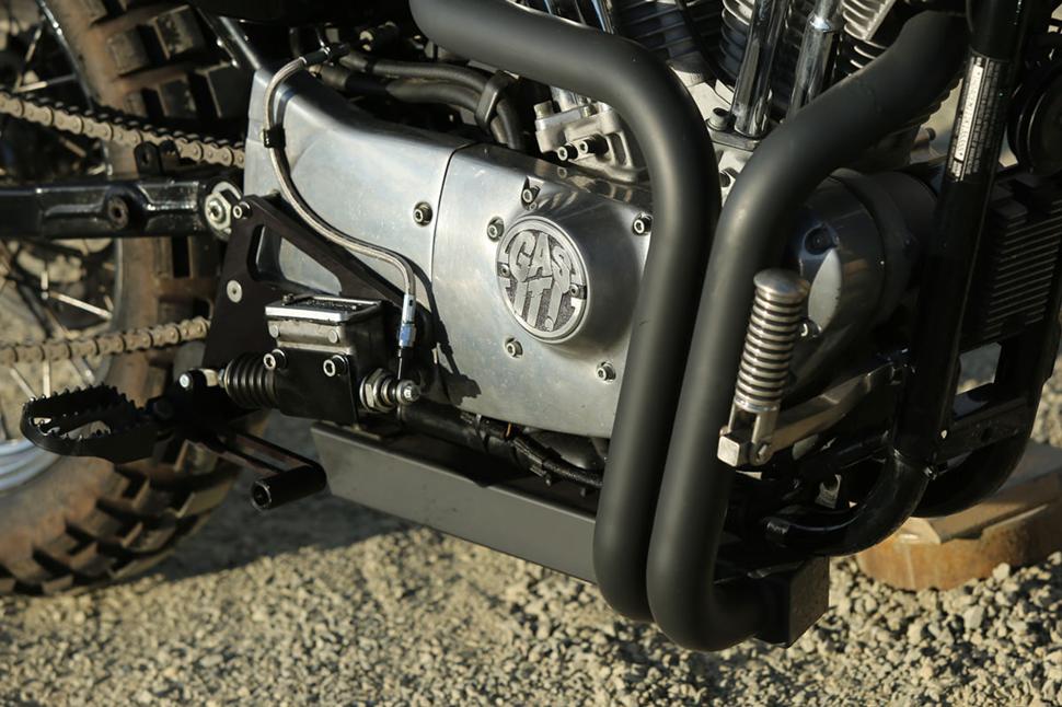 Оригинальные передние подножки Sportster были удалены. Теперь органы управления расположены ниже и дальше, что положительно сказалось на эргономике.