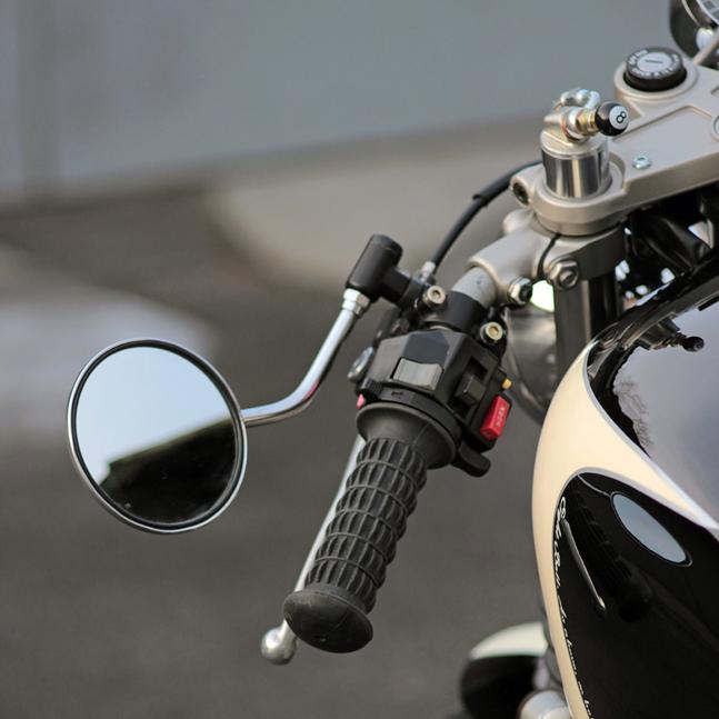 К стандартным деталям относятся передняя фара в стиле Бейтс 6 ¼ дюйма, сигналы указателей поворотов Daytona и цифровая панель Acewell, ручки Motomi и гофрированные манжеты вилки MotoLanna.