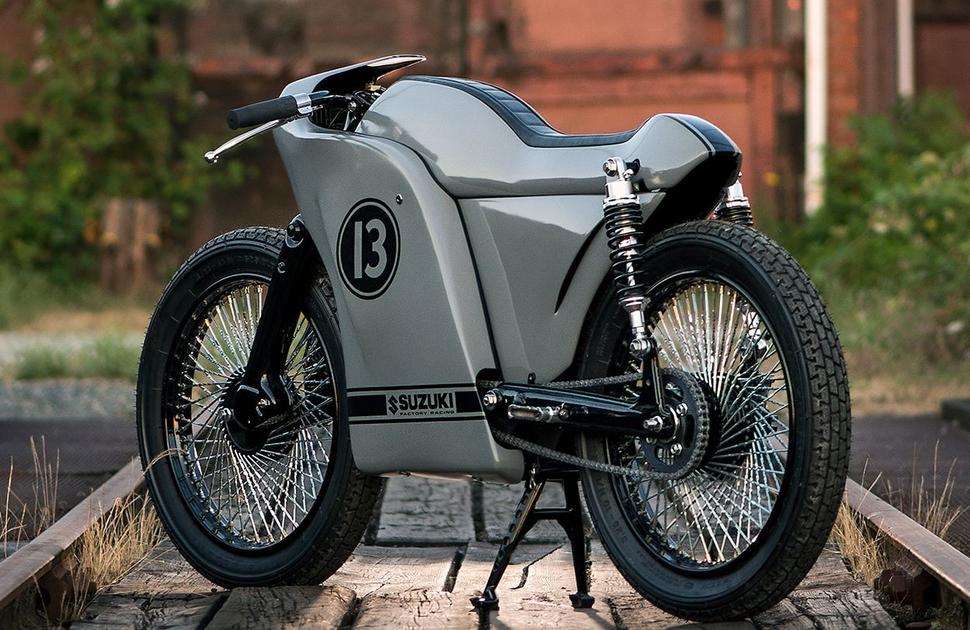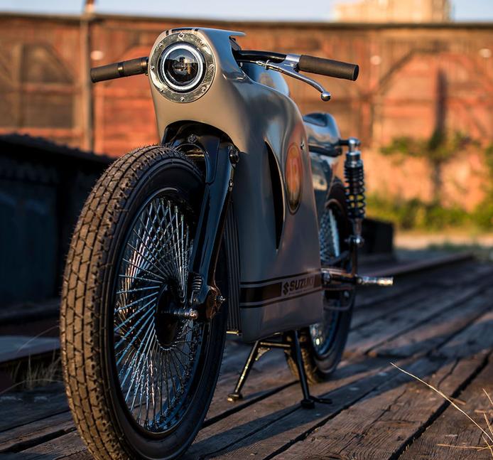 Этот изящный кафе-рейсер - новейшее творение канадской мастерской Салли, носящей простое название Sally’s Speed-Shop, то есть мастерская скорости Салли. Кстати, если у вас не получается опознать донора этого проекта, это нормально - их там несколько. Разобрав его, вы найдёте электродвигатель, самодельные аккумуляторы, композитную облицовку и несколько деталей, позаимствованных с Honda и Suzuki.