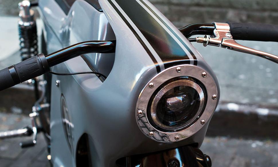 Вдохновение для дизайна этого электрического кафе-рейсера пришло с разных сторон. Салли ссылается на всё подряд, начиная с легендарной Honda CB200 и до истребителей эпохи 60-х. На первый взгляд, должна получиться полная ахинея, но это работает.