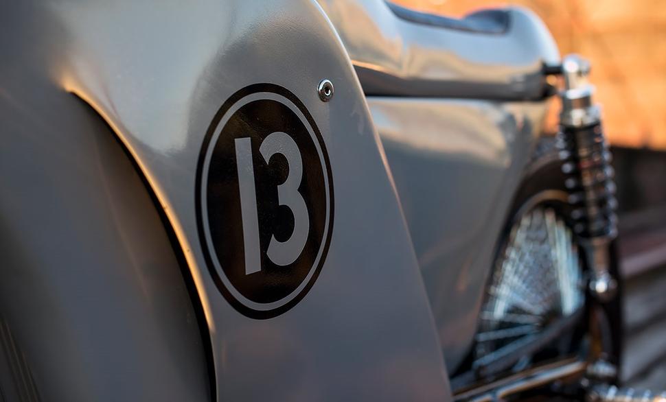 Электрический кафе-рейсер Салли не только визуально хитёр, но и удивительно пропорционален. Выполненный со вкусом в монохромной ливрее с минимальной графикой, он создаёт идеальную винтажную фигуру. А ещё Салли проверил его производительность, и он оказался чрезвычайно быстр для мотоцикла на узких колёсах с барабанными тормозами. "Двигатель получил пиковые 200Нм крутящего момента, а максимальная скорость во время испытаний составила свыше 170км/ч. Запас хода невелик, так как он создан для скорости, а не для больших расстояний".