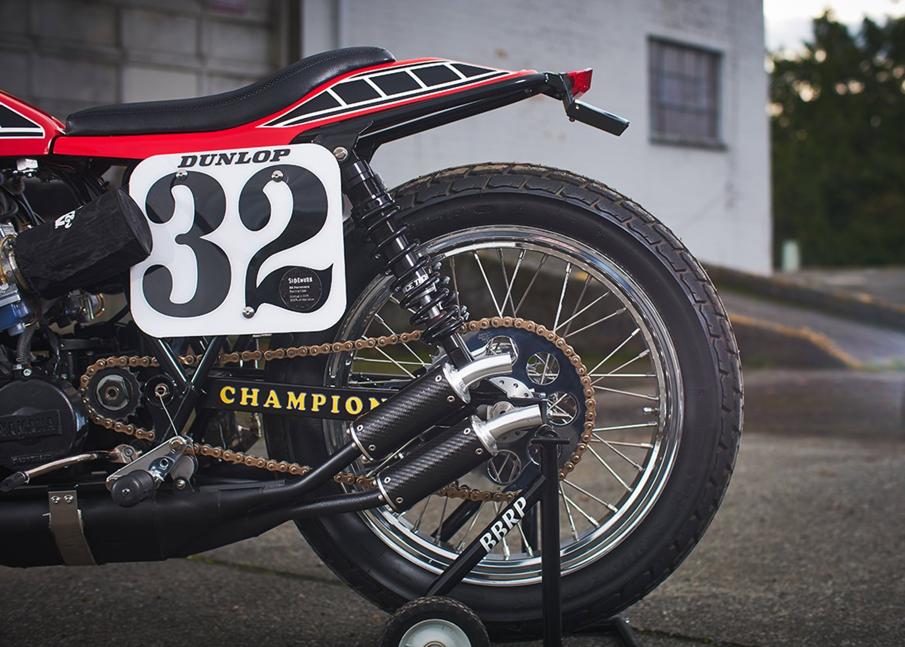 Этот Флет трекер имеет все необходимое, чтобы передвигаться по дорогам общего пользования: фары, документы и прочее. Обычно гоночные мотоциклы и двигатели продаются без документов, поэтому Брэду пришлось потратить очень много времени, чтобы оформить все согласно букве закона.