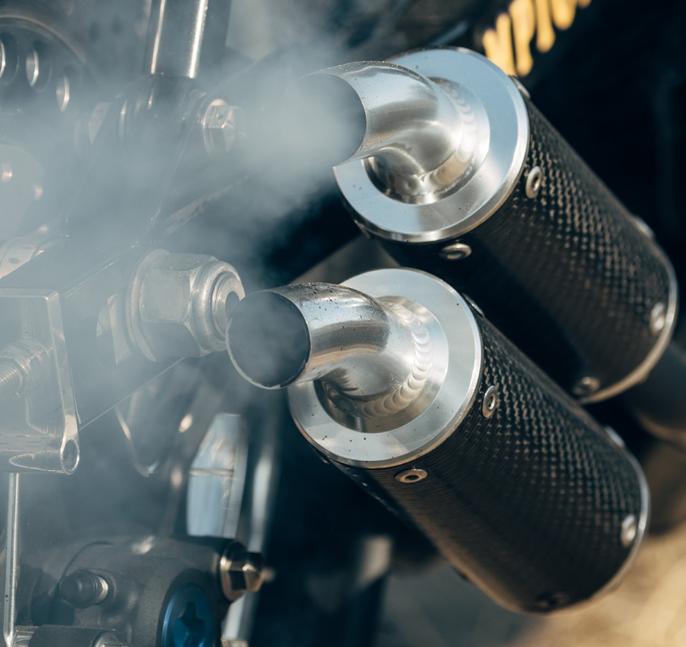 Увеличенные выхлопные коллекторы -тоже работа Джефа Палхеджи. На них он установил пару крошечных глушителей от TZ Mike.