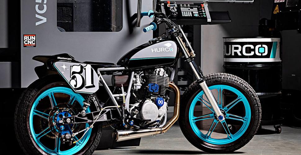 Yamaha SR500 не только выглядит чертовски здорово, но и очень неплохо едет. Максим уже ждёт - не дождётся, когда даст на нём угла на флэт-треке… а до тех пор главная задача мотоцикла - красоваться на стенде Hurco на индустриальных выставках.