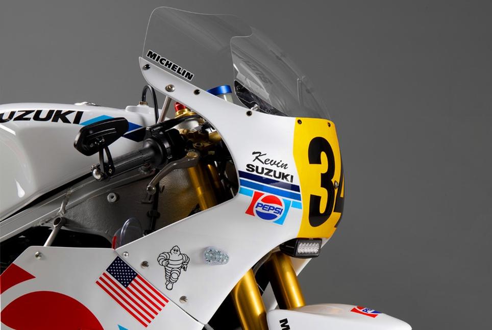 Много лет назад Джон Бойд, заядлый коллекционер, импортёр и настоящий мотоголик, задумал этот проект и начал собирать запчасти, начав с разбитого RG400 с небольшим пробегом, купленного в Японии. Был в истории Bimota период, когда из-за банкротства компании они отправляли дилерам собранные мотоциклы на запчасти. Джону достался такой Bimota SB8R вообще без пробега, но и без двигателя - и было решено собрать из двух мотоциклов один, одеть в гоночный обвес RG500 GP и окрасить в реплику Pepsi.