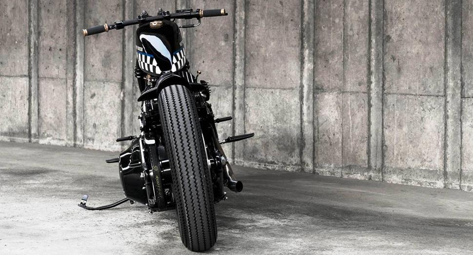 Тьюи переделал сиденье на подпружиненное на новой основе для меньшего веса. Прямо позади него находится небольшое элегантное крыло - подрезанный вариант стокового. Задняя светотехника изготовлена Kuryakyn, а изящно запрятанные передние поворотники - от Motogadget.