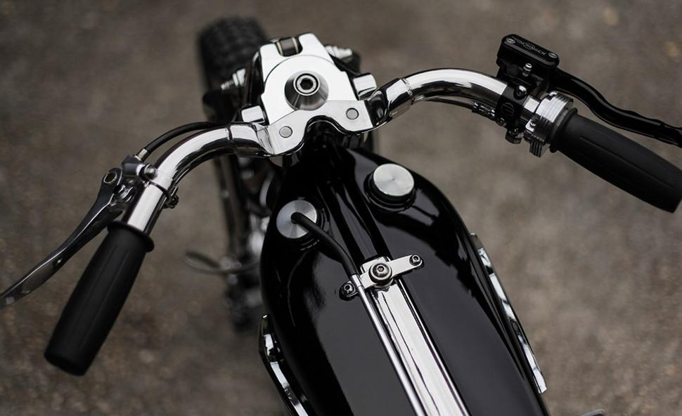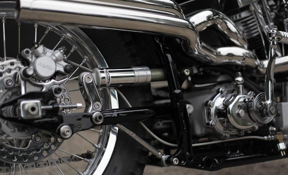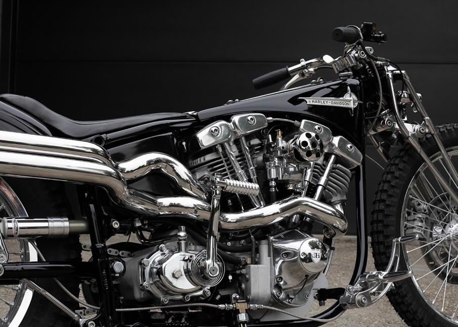 Воздушный фильтр был специально изготовлен для этого проекта. Также поклонники Harley Davidson заметят, что Сэмюэль разделил коромысла, это классика, но провернуть такой трюк с Shovel head не так-то просто.