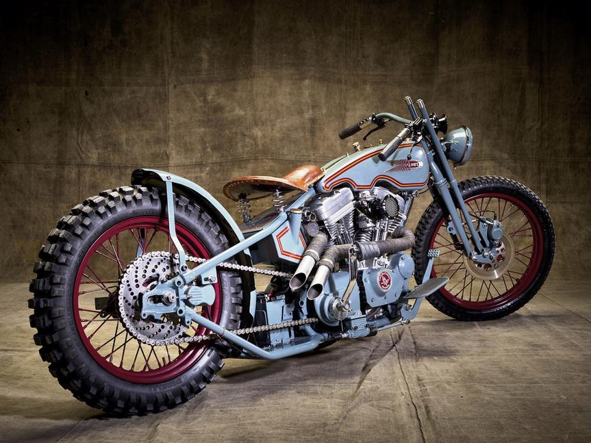 Затем мотоцикл был изящно окрашен в базовый цвет, поверх которого нанесены акценты золотого и бордового цветов. Схема напоминает заводские расцветки гоночных мотоциклов того времени, призванные подстегнуть продажи. Подпружиненное кожаное седло слегка набито для мягкости, а колёса обуты в настоящие злые внедорожные шашечки. Не самые удобные, но кого это волнует? В конце концов, это винтажный гоночный мотоцикл, водитель которого будет испытывать примерно те же чувства, что и гонщики более ста лет назад!