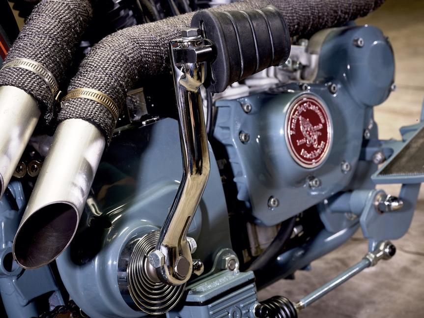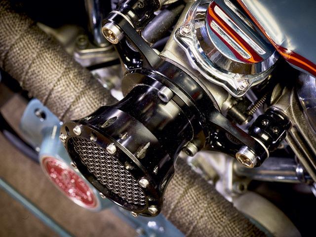 Чтоб его было слышно раньше, чем видно, Лоэн решил не признавать полумер с выхлопом - короткие иглы изрыгают гром, который способен затмить громовую колесницу Тора. Карбюратор с подогревом подаёт дополнительное топливо в смесь, забирая воздух через фрезерованную впускную воронку. Но настоящий винтажный шарм мотоциклу придаёт процедура запуска двигателя: