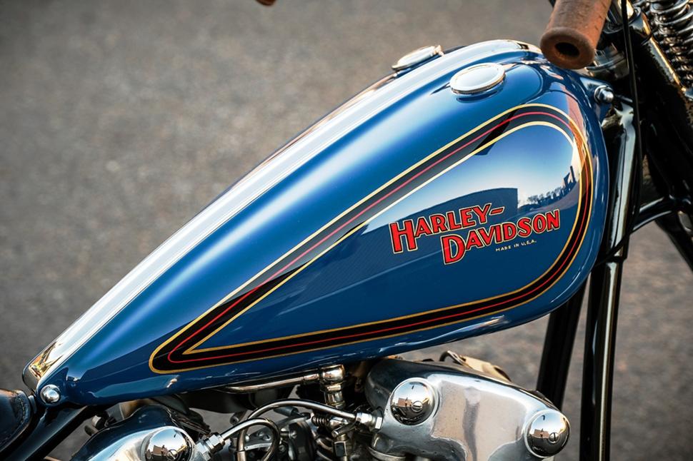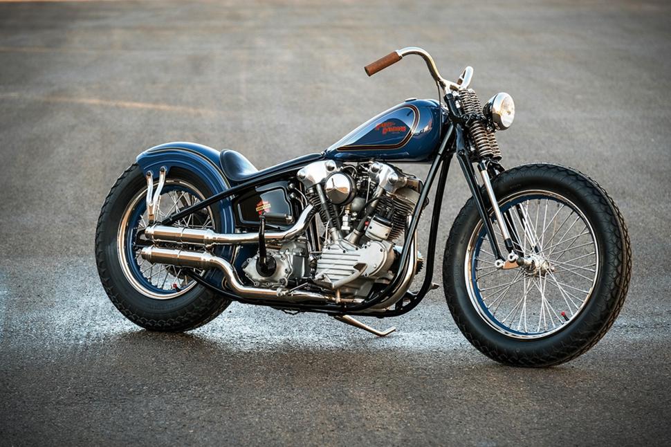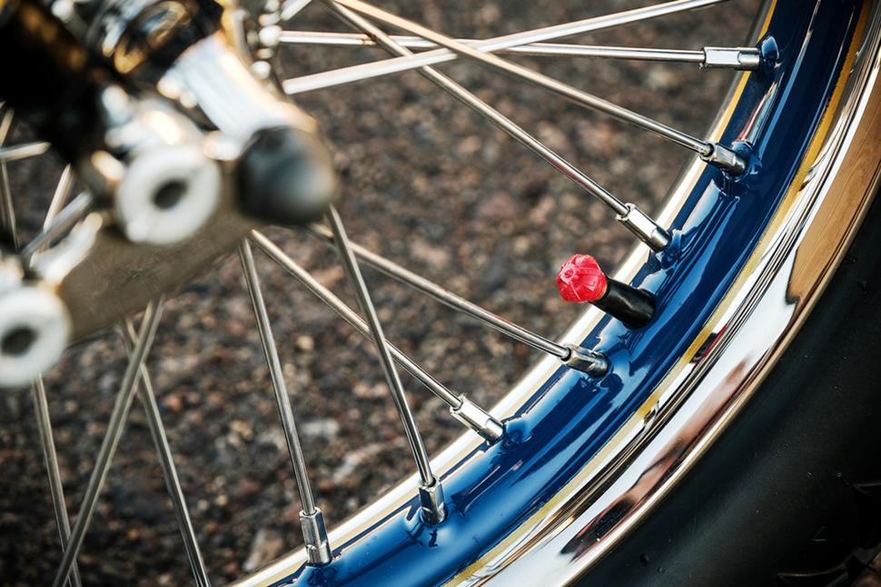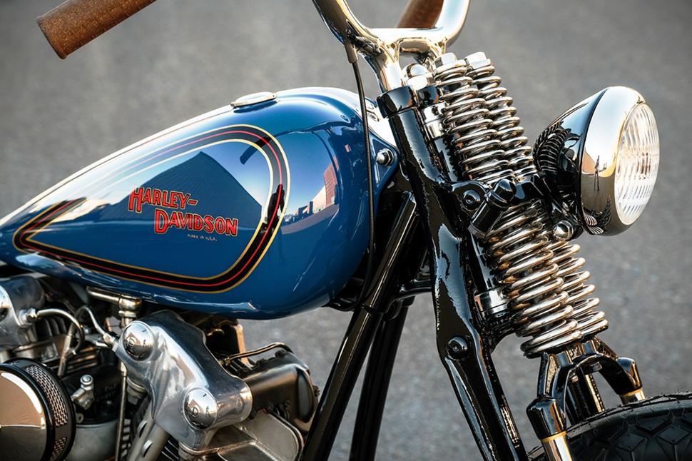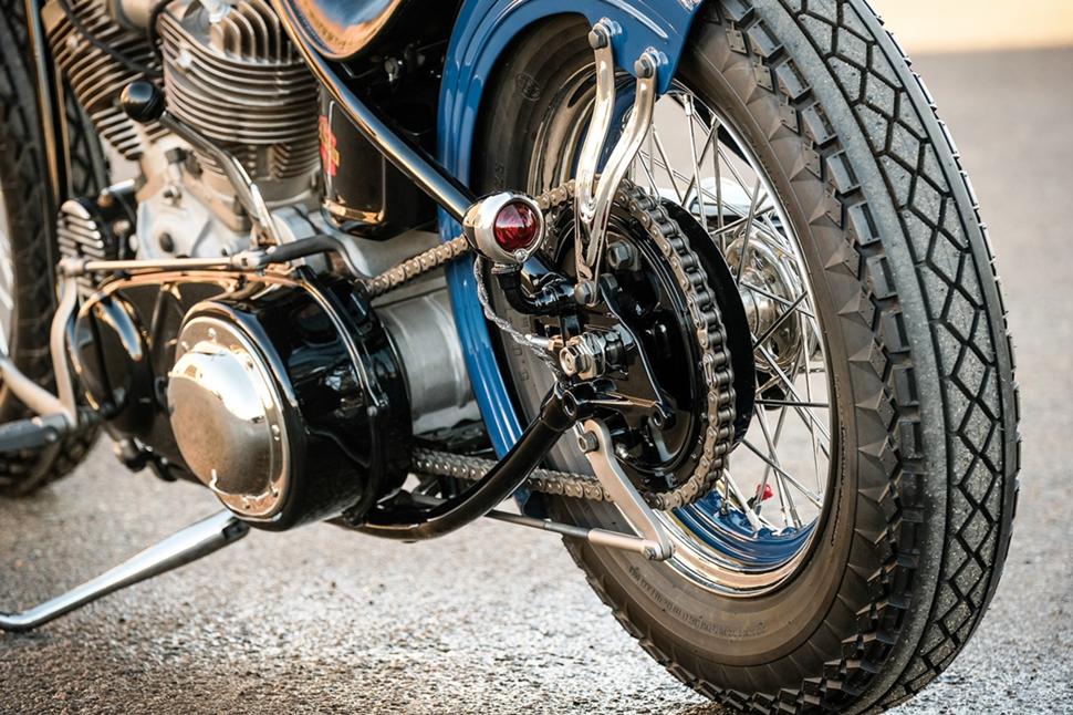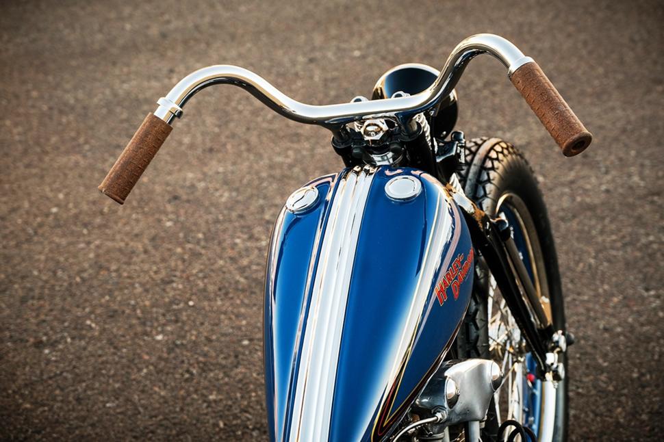 В духе той эпохи у байка должен быть раздельный бак с красивым швом между половинами, но на самом деле он цельный”. Обдумав в общих чертах форму, он изготовил оправки для своего пресса и выгнул элементы бака. Затем изготовил крыло, в дизайне которого опирался на ранние Harley с “элементами стиля наклхэдов и серии JD