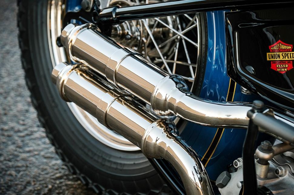 Шикарный звук мотоциклу придаёт наклхэдовский выхлоп, предоставленный ребятам друзьями Carl’s Cycle Supply из Южной Дакоты. Ещё один друг Джордана, Джейк Бойд, помог со срочной доставкой выхлопа на фоне неумолимо приближающегося дедлайна.