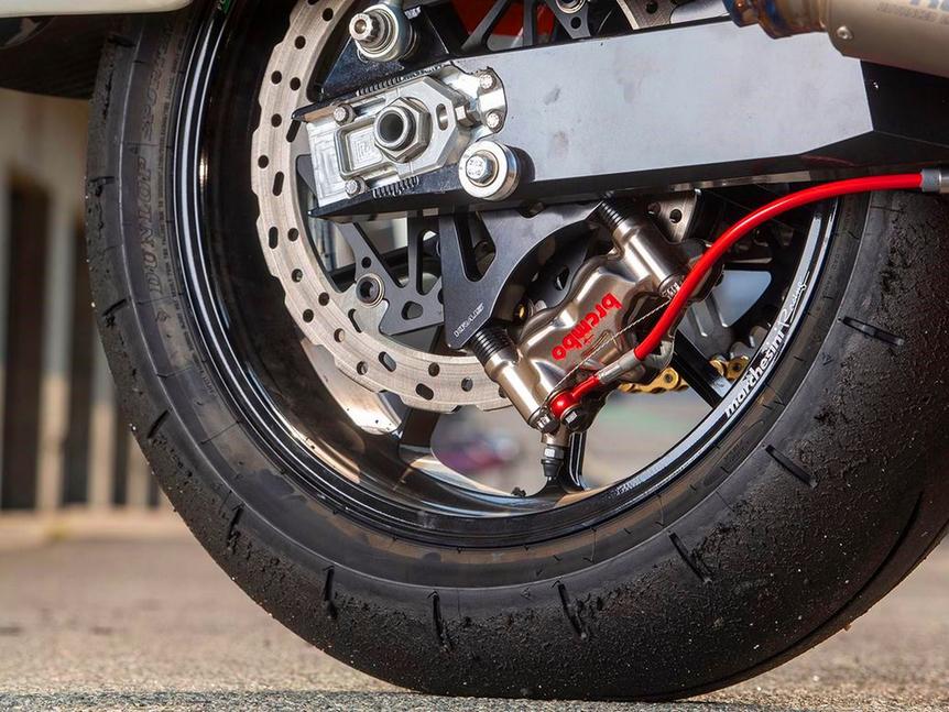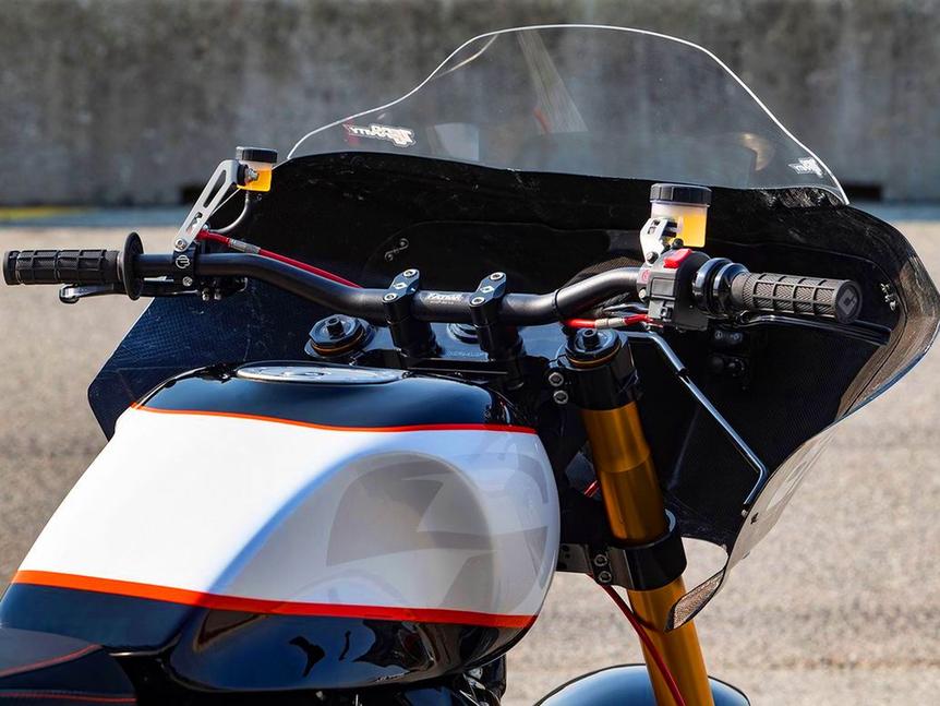 И, наконец, были установлены вынесенные назад подножки с гоночными рычагами и низкий руль Renthal Doug Henry. Кастомная карбоновая основа для концепта сиденья Saddlemen Racing обеспечивает Вули ровно те посадку и уровень комфорта, которые ему нужны. Карбоновая основа окрашена, высота подвесок отрегулирована, и мотоцикл готов к тестам и настройке. А там и к беспрецедентной гонке со множеством неизвестных!