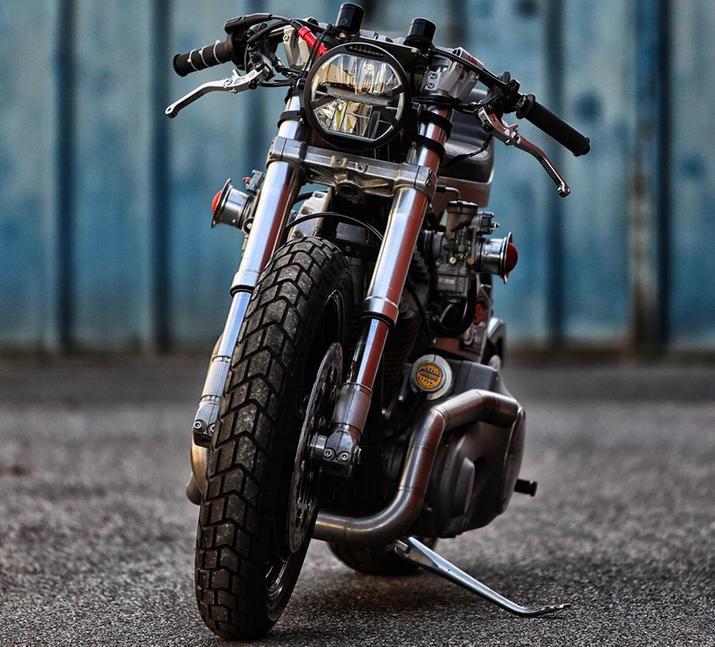 Спереди на мотоцикле Harley Davidson Softail стоит перевёрнутая вилка от Ducati Monster, настроенная под вес Harley. Колёса, 18-е спереди и 17-е сзади, позаимствованы у Ducati Scrambler - они весят намного меньше штатных.