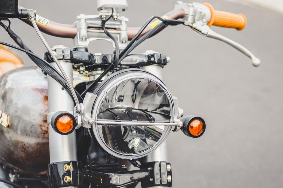 На мотоцикл был установлен руль Pro Taper бронзового цвета и спидометр Motogadget в кастомном алюминиевом корпусе. Мастера восстановили и отполировали оригинальные рычаги управления, чтобы сохранить ретро стиль, который так нравится Сантьяго.