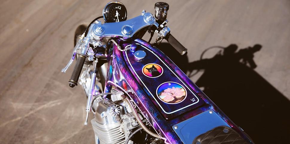 Кийонага-сан открыл свою мастерскую Kiyo’s Garage в 2013 году в Лос-Анджелесе. Примерно тогда же он создал Cherry Blossom - длинный мотоцикл для гонок на скорость с турбированным мотором от Honda CB750 в построенной с нуля раме. Пару лет спустя был сделан Gekko - ещё один монстр с сердцем родом из 70-х… вернее, с двумя сердцами, потому что моторов от CB в нём было два.