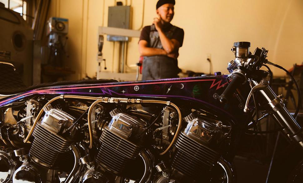 Такова The Galaxy, во всём её 12-цилиндровом 2508-кубовом великолепии. Создал её безумный гений (по совместительству - калифорнийский кастомайзер) Мицухиро “Кийо” Кийонага, воплотив в железо свои детские мечты...
