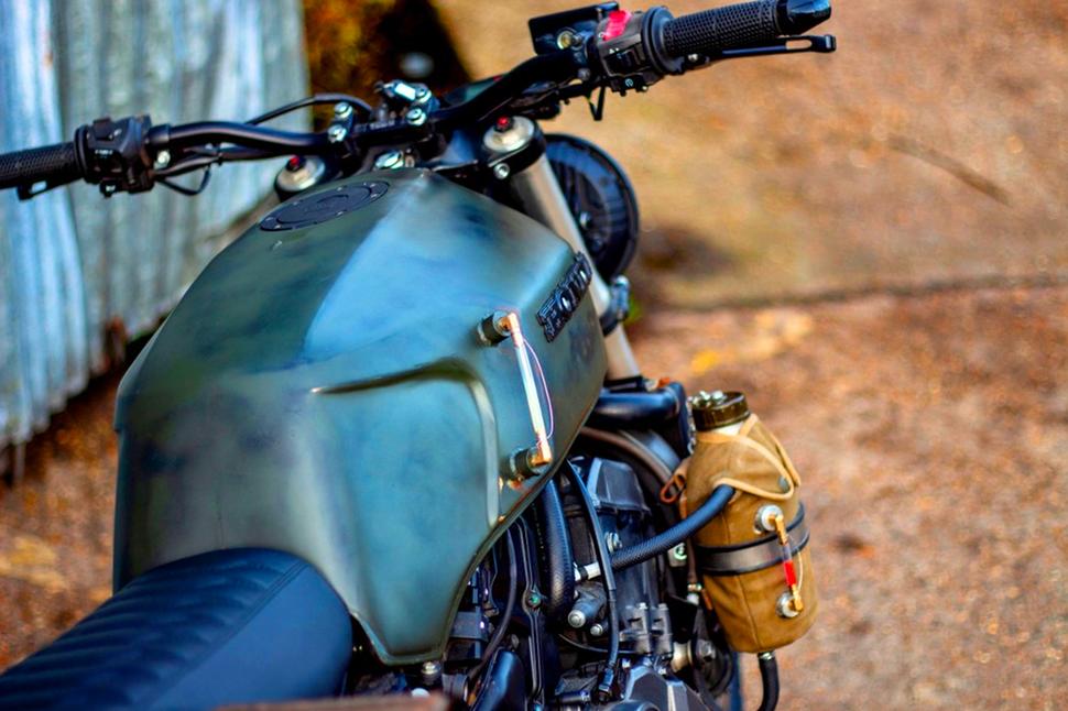Долгое время я был военнослужащим, и теперь порой скучаю по суровой эстетике экипировки и военной техники, особенно на контрасте с моей спокойной и комфортной жизнью в Лондоне. До последнего времени я несколько стеснялся выпячивать своё военное прошлое, но потом меня осенило - можно же воплотить его в мотоцикле!