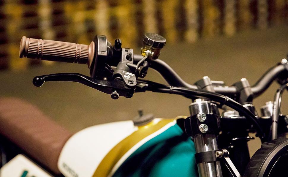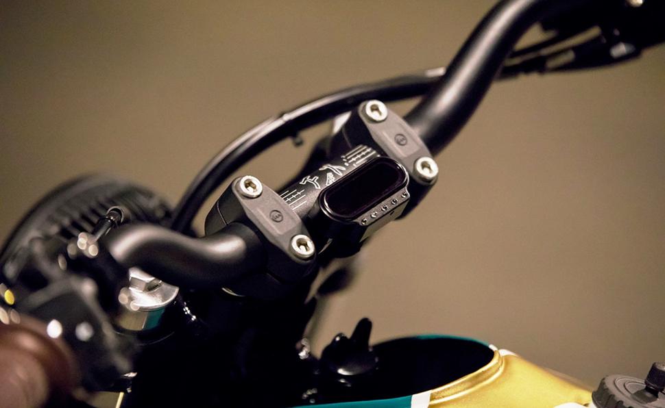 Органы управления тоже обновлены: высокий и широкий руль Magura оснащён новыми пультами, коричневыми грипсами в цвет сиденья и крохотной минималистичной приборкой Motogadget, установленной между проставками руля и даже оснащённой несколькими световыми индикаторами.