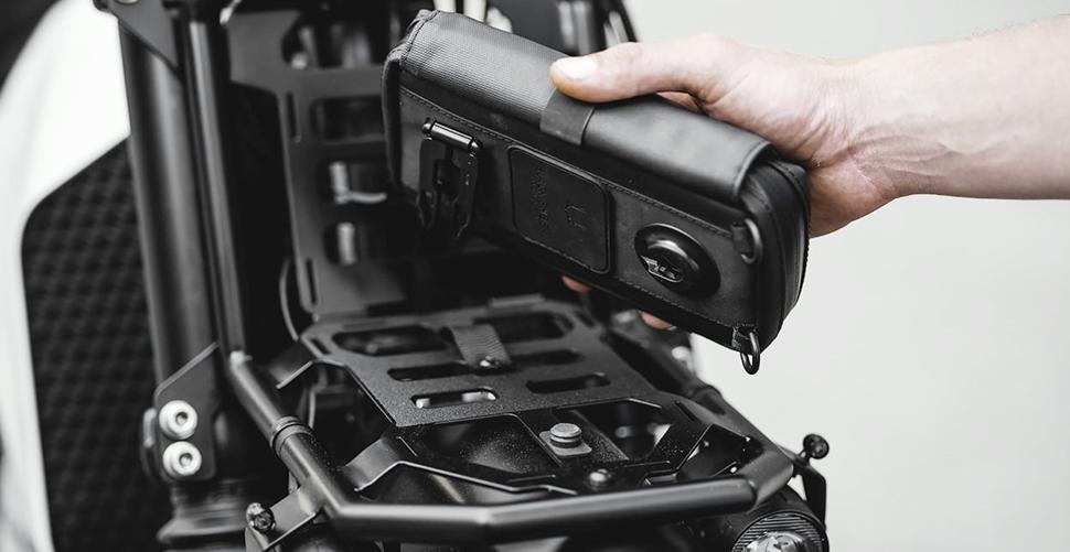 На нём установлена пара крохотных поворотников Kellermann Atto, фара Highsider и быстросъёмная система крепления для водонепроницаемой багажной сумки Black Ember.