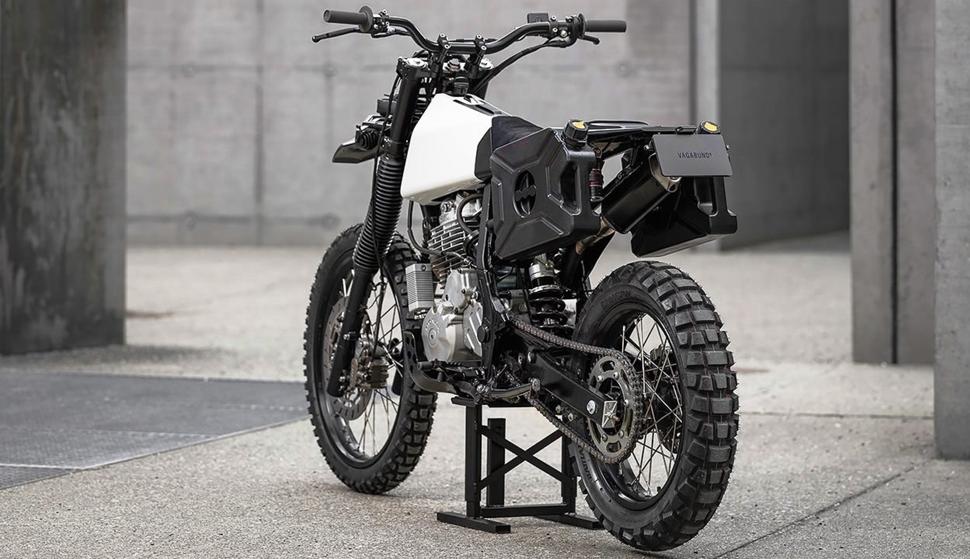 Были и более традиционные работы: например, Vagabund перебрали 644-кубовую одностволку и сделали для неё выхлопную систему из нержавеющей стали с коллектором 2-в-1 (это одна из тех забавных моделей, у которых одностволка оснащается двумя выпускными портами). На конце выхлопа находится доработанный глушитель Akrapovič, а новый масляный радиатор изготовлен германским брендом Off The Road.