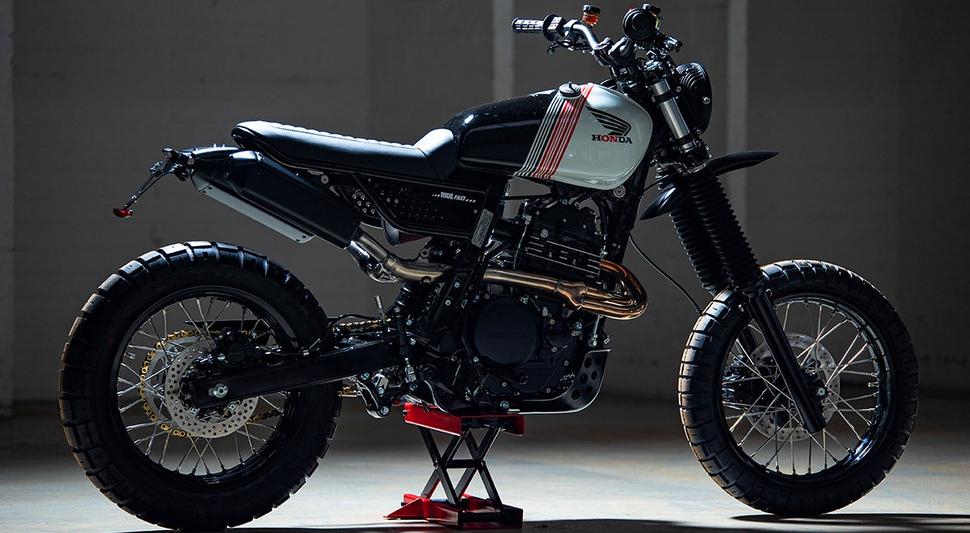 Основан он на всеми любимой Honda NX650 Dominator - и как прошлогодний Доминатор от Хольгера, он стал дорожным скремблером с мотардными задатками. Оба проекта явно были сделаны по одному лекалу, и вторая итерация снабжена небольшими, но важными дополнениями, делающими её более яркой и интересной.