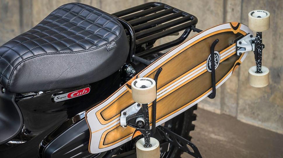 Следить за их прогрессом чертовски занятно, потому что они творят чёрт-те что с одним из самых популярных в мире скутеров. Последний проект K-Speed - вообще из ряда вон: это новенькая Honda Super Cub в раллийном духе и с креплением для скейта.