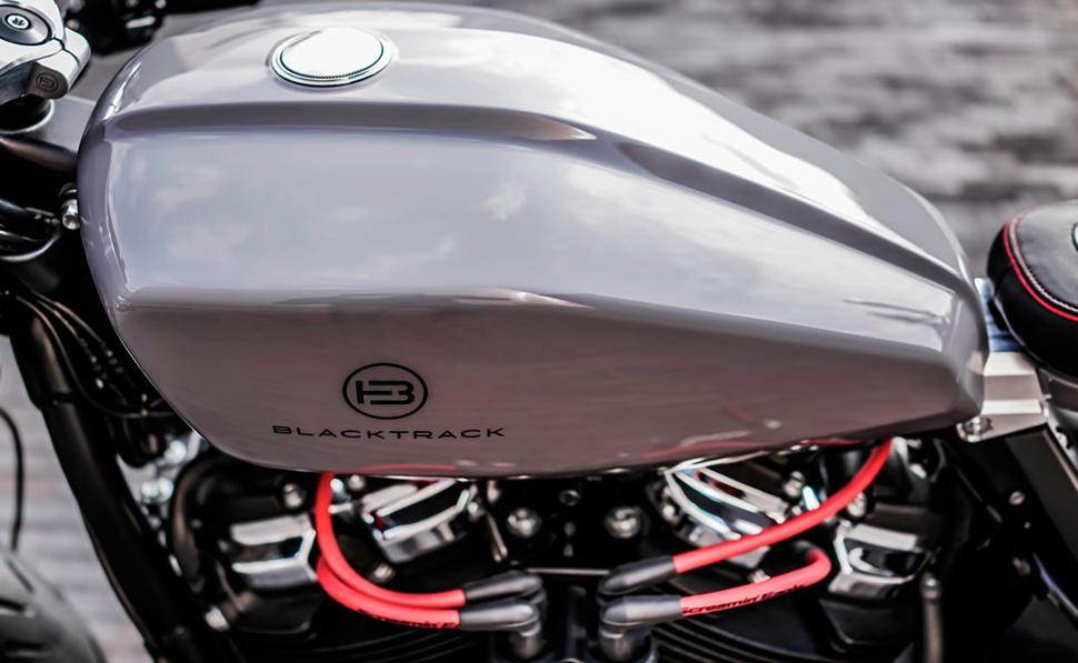 Fat Bob 114 - один из самых весёлых мотоциклов в модельном ряду Harley Davidson. Его 114-дюймовый (1868 куб. см) двигатель выдаёт ломовые 155 Нм, при этом его управляемость благодаря шасси Softail нового поколения весьма на высоте. Но его силуэт пауэр-круизера довольно далёк от привычного облика кафе рейсера. Однако, именно этого основатель и главный дизайнер Blacktrack, Саша Лакич, и хотел: