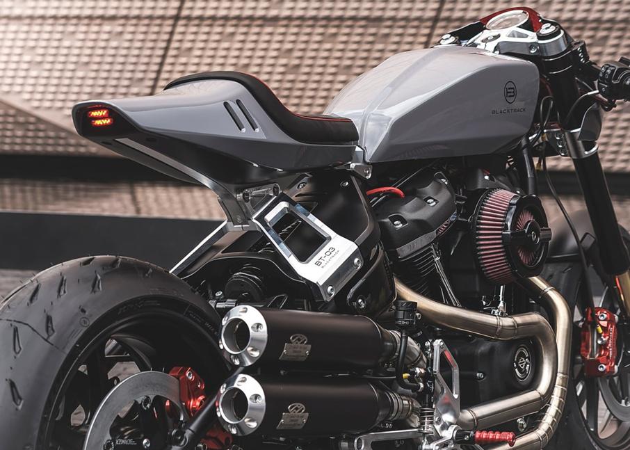 Blacktrack Motors превратили создание кафе рейсеров в высокое искусство. Их первым произведением был один из красивейших кафешников на базе Honda CX500, а свой успех они закрепили отличным Thruxton’ом. А недавно они взялись за весьма амбициозный проект - BT-03, кафе рейсер, основанный на Harley Davidson Fat Bob 114 FXFBS.