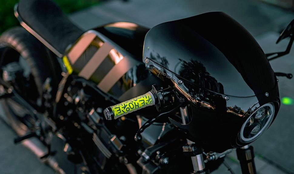 На электрику из прошлого тысячелетия полагаться не стоит, поэтому Крис установил полный комплект аксессуаров Motogadget - в том числе, поворотники, спидометр, а также систему бесключевого зажигания, подключив всё это к центральному контроллеру m.unit.