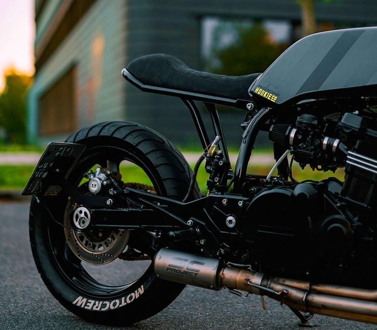 Однако, этот кастом совершенно не таков. Здесь немецкий пожарный Крис Шолтка, в свободное от спасения жизней время работающий над мотоциклами под брендом Motocrew, поставил всё с ног на голову. Обычно кафе-рейсеры делали из дорожных мотоциклов, слегка заточив их под спортивную езду. Но Крис поступил наоборот: он взял лютый спортбайк и снял с него спортивный костюм.