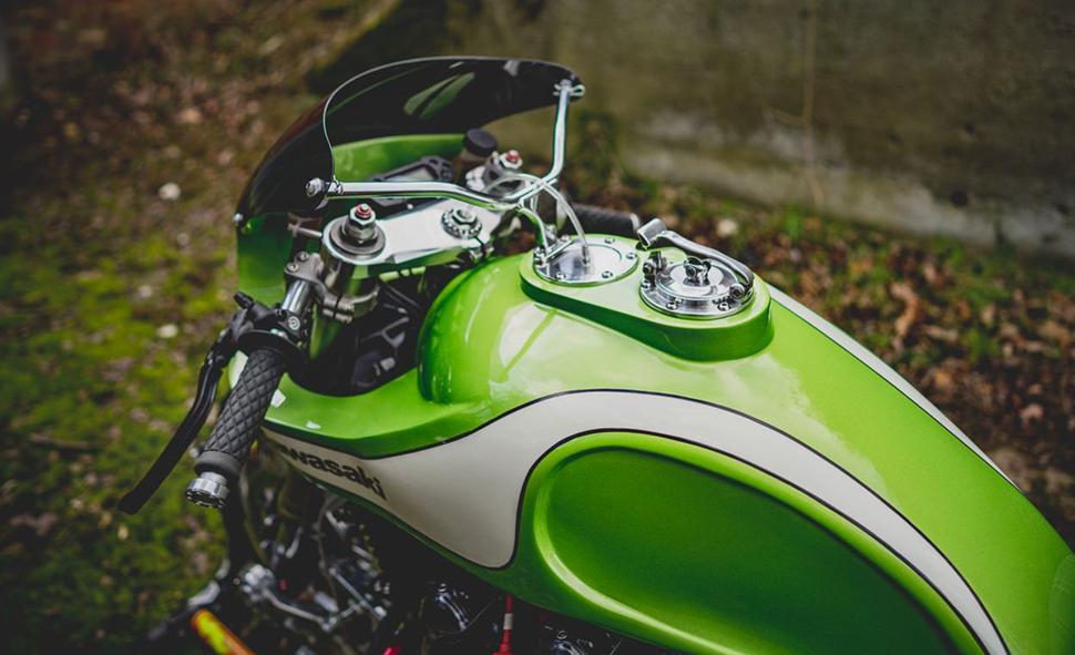 Заключительным этапом работы над Zephyr 750 стала работа с проводкой. Линда и Пол полностью ее заменили, установили светодиодные фары в кастомных корпусах, законтрили большинство болтов проволокой. Мотоцикл покрасили в зеленый и отправили на стенд для правильной настройки.