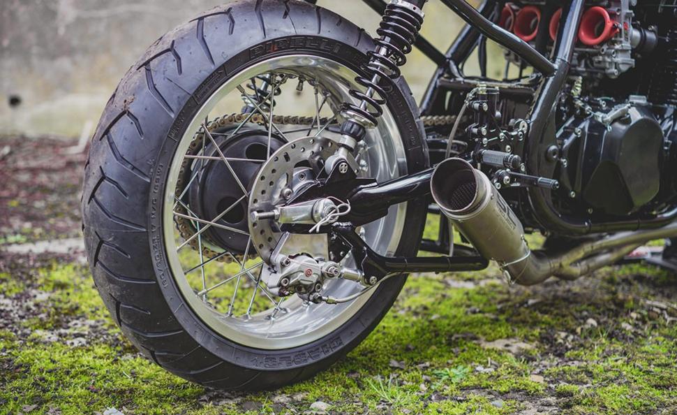 Как и большинство кастомов от November Customs, донор Kawasaki Zephyr 750 оказался частично законченным проектным мотоциклом с маленьким пробегом. Удивительно, но первым изменением стала установка маятника от Honda CB900. Он лучше подходил с точки зрения конструкции. Что касается амортизаторов, то выбор пал на YSS. Пол говорит: