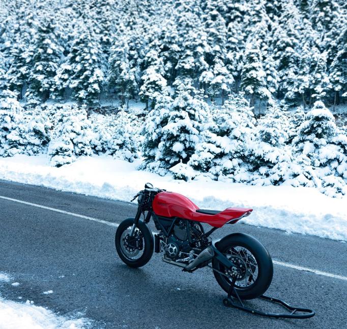 И чтобы предотвратить ваши вопросы: да в Греции бывает снег. В прошлом месяце в этой средиземноморской стране зафиксированы рекордно низкие температуры. Снегом оказался покрыт даже Акрополь. Прекрасный фон для безупречного кастом Ducati.