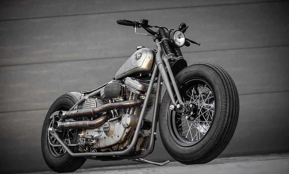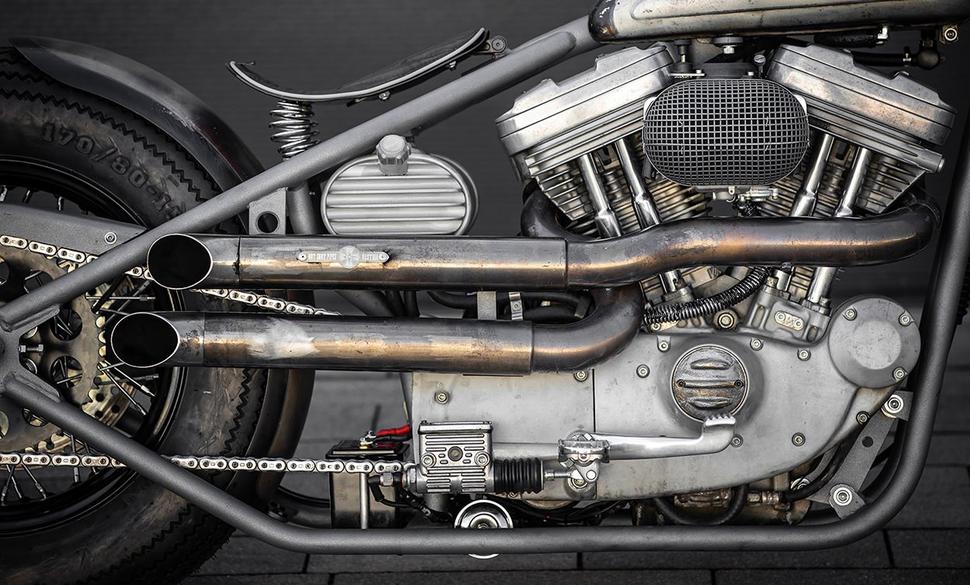 Они делают шикарные реплики старых харлеевских рам, кастомные рамы под заказ и вот такие, как на этом Sportster, - рассказывает Мартин. -Это их серийная рама для Шпротов с геометрией старых стоковых сухих рам HD.