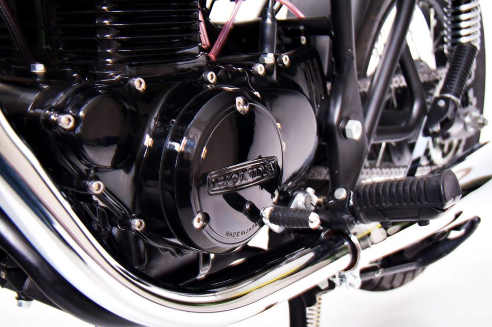 Джеймс основательно обновил двигатель, убрал воздушную коробку и установил новые карбюраторы Mikuni VM30. Устройство двигателя заканчивается фильтрами K&N и коническими глушителями. Электросистема также была модернизирована, для чего автор использовал систему зарядки Rick’s Motorsport Electrics, электронное зажигание специалиста Honda Charlie’s Place и катушки Dynatek.