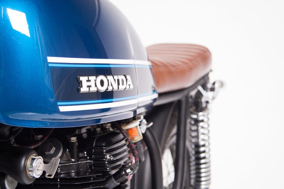 Топливный бак был позаимствован у модели Honda CB500T 1976 года. Джеймс снял оригинальные значки, покрасил бак, установил его обратно и приклеил оригинальные значки Honda CB360T.