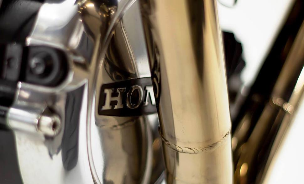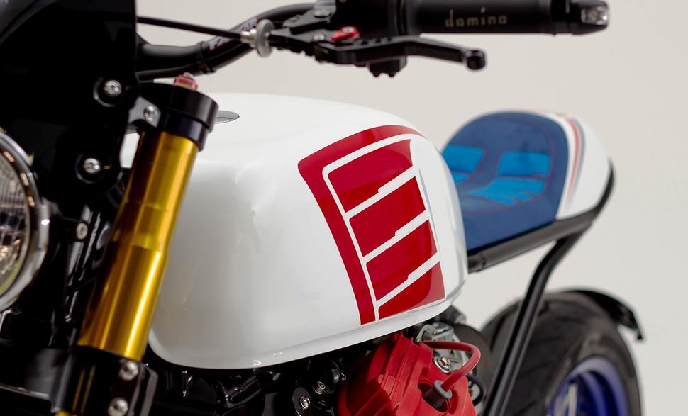 Мы с клиентом единодушно решили, что этот мотоцикл украсит легендарная цветовая схема Honda с изящными логотипами и надписями.