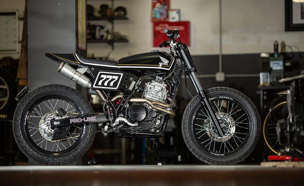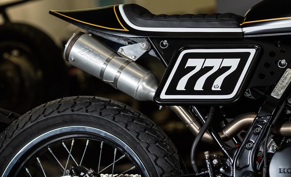 Опытный взгляд опознает бак от Honda CG125, идеально подходящий к новому хвосту мотоцикла. Боковые номерные панели и изогнутая передняя со встроенным диодным огнём изящно очерчены для максимально эффектного вида.