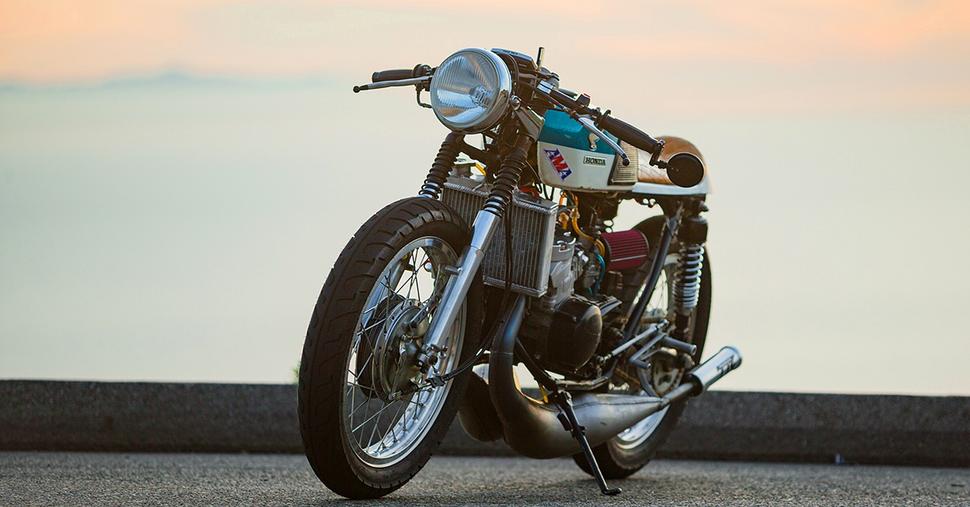 325-кубовый 4-тактный моторчик Honda по-своему симпатичен, несмотря на тяжёлую и неэффективную выхлопную систему, притягивающую взгляды ценой огромного веса и ущерба в три лошадки относительно Honda CB350. Но такого мотора Эндрю было мало: