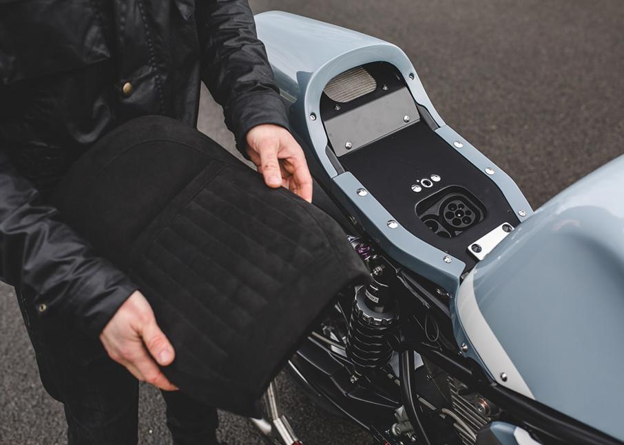 Контроллер мощности расположен позади обвеса в виде топливного бака, а зарядное устройство под “хвостом”. Мастерам пришлось не просто, ведь для того, чтобы установить эти компоненты они отказались от своих привычных решений: например, им пришлось увеличить задний обтекатель.
