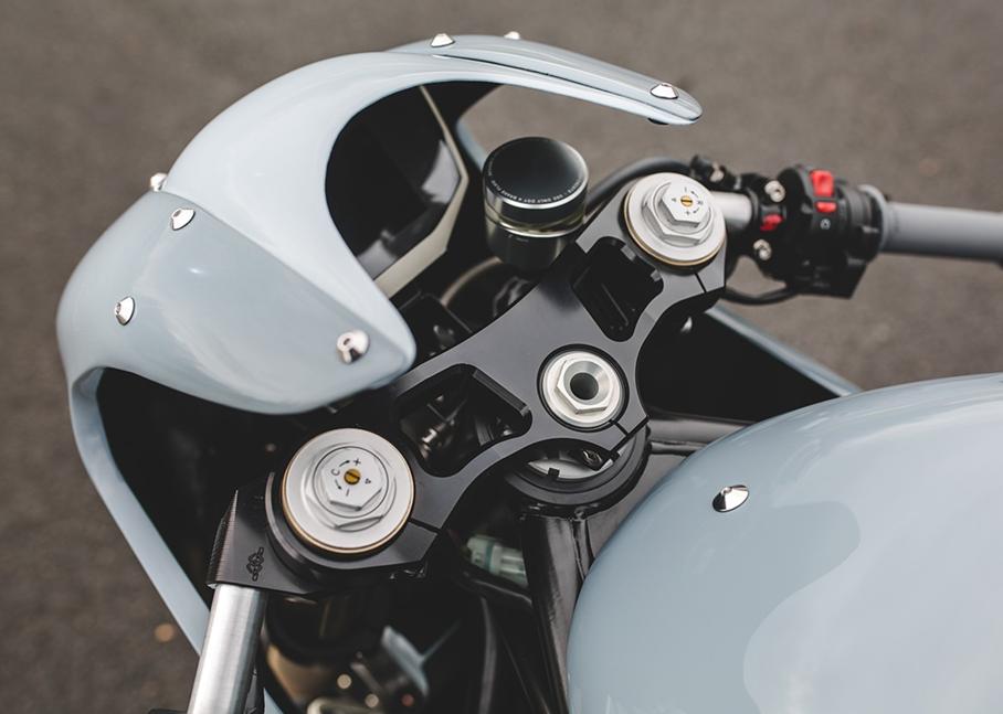 Также они не обошли стороной и тормозную систему: установили диски и суппорты Brembo и главный тормозной цилиндр Magura. Мотоцикл получил ножные органы управления, тормозной резервуар и наконечники руля от Rizoma, а грипсы -от Renthal. Также deBolex использовали в своей работе крепежные элементы Pro-Bolt.